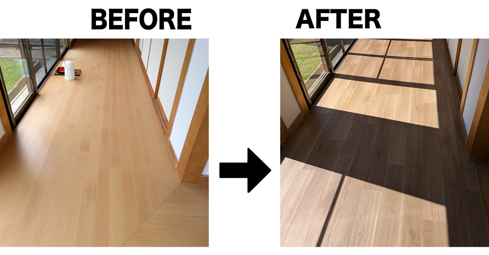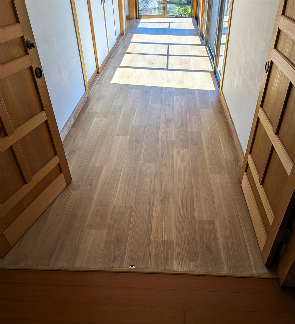 先日の障子張替えに続きまして今回は長尺シート張りの工事を致しました。